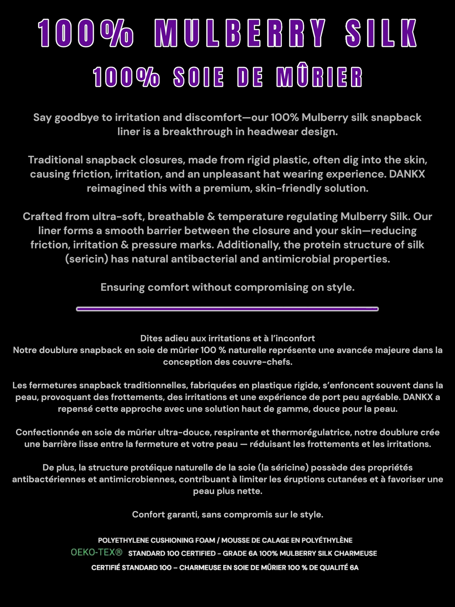 Made from temperature-regulating natural silk fibers, the Snapback Liner delivers lasting comfort, breathability, and a smoother wearing experience—all while protecting your skin from the harshness of plastic components.